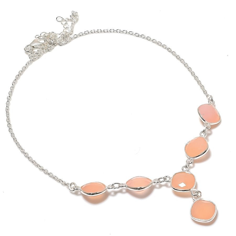 Elegant Natural Pink Chalcedony Solid Silver Wedding Chain i