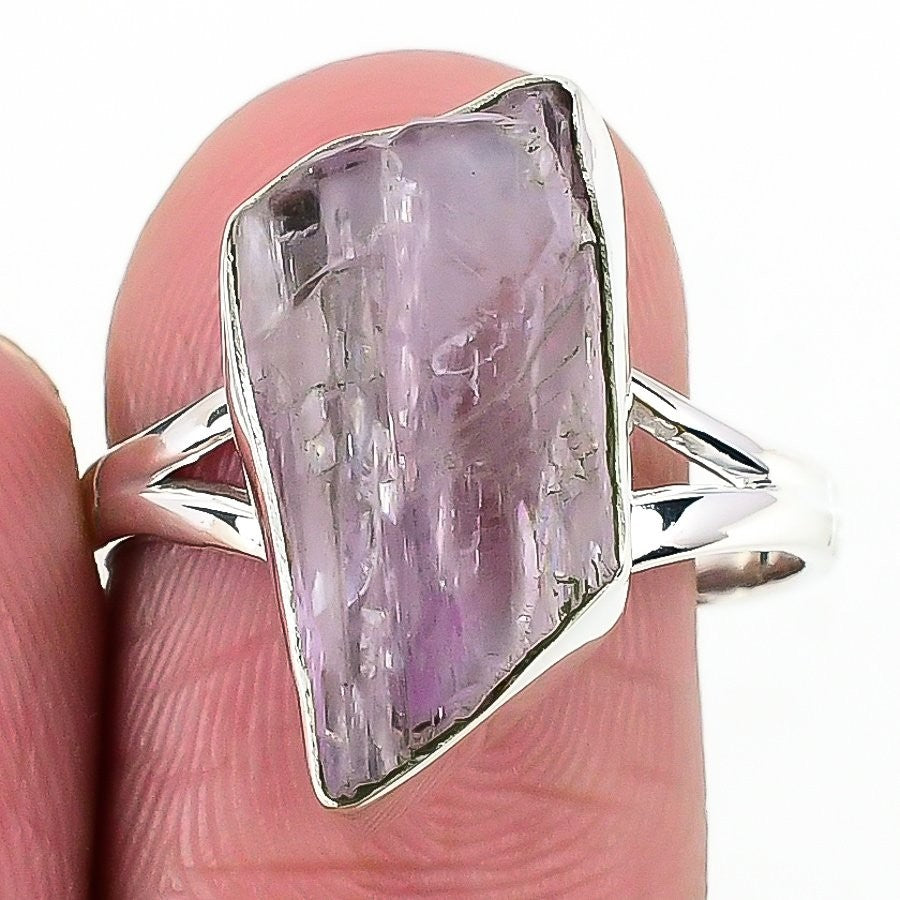 Natural Pink Kunzite Daughter Unique Statement Ring Solid Sterling Silver US 9.5
