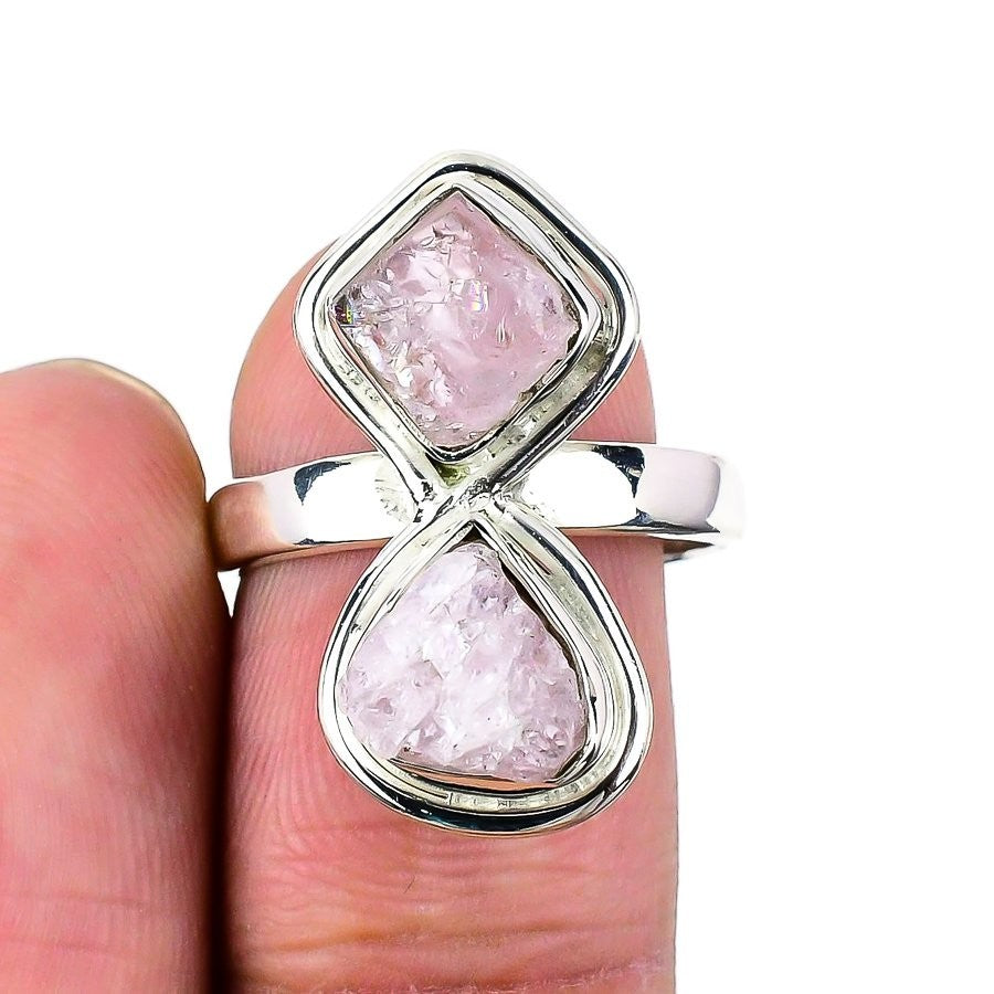 Natural Pink Kunzite Daughters Day Wife Statement Ring Jewelry Solid Silver US 8