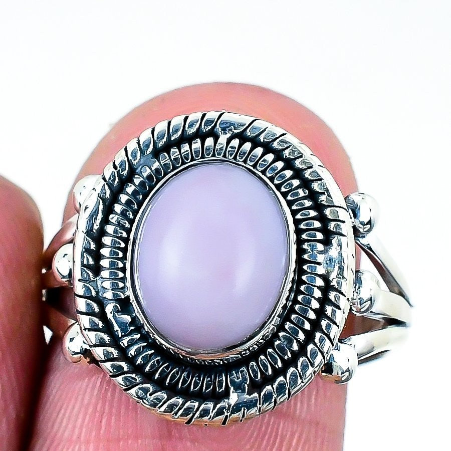 Natural Pink Kunzite Promise Sister Band Engagement Handcrafted Ring 925 Silver
