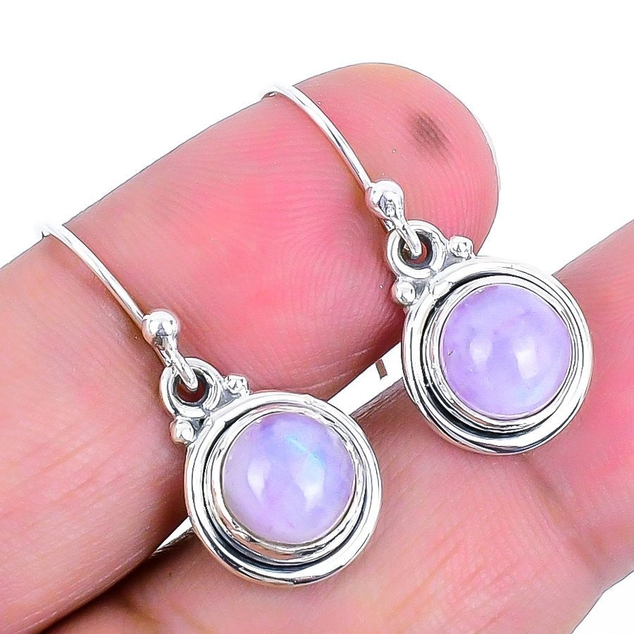 Natural Pink Moonstone Sterling Silver Boho Dangling June Birth Earrings Jewelry