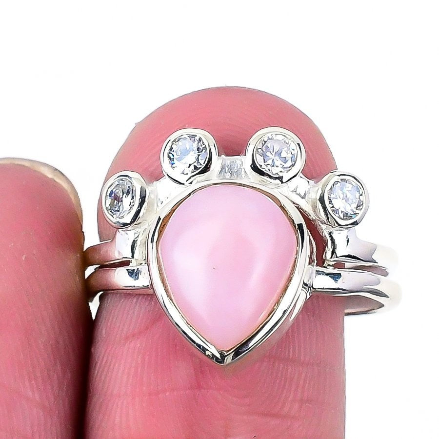 Natural Pink Opal 925 Sterling Silver New Cluster Anniversary Daughter Gift Ring