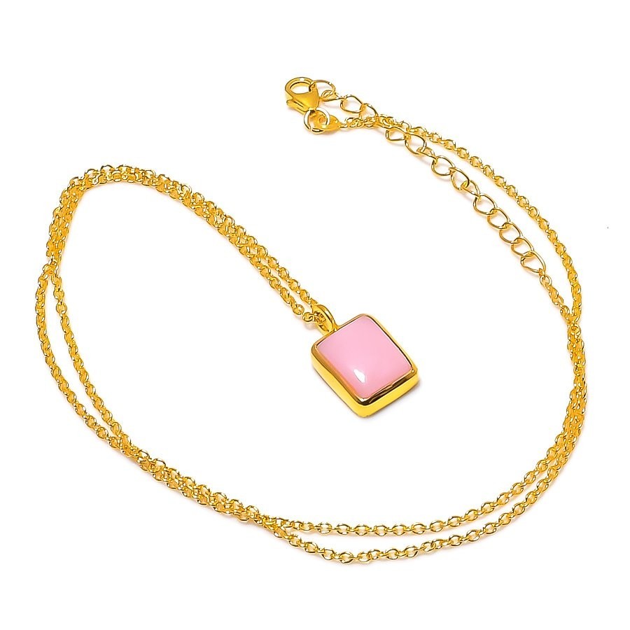Elegant Natural Pink Opal Chain Handmade Wedding Necklace in