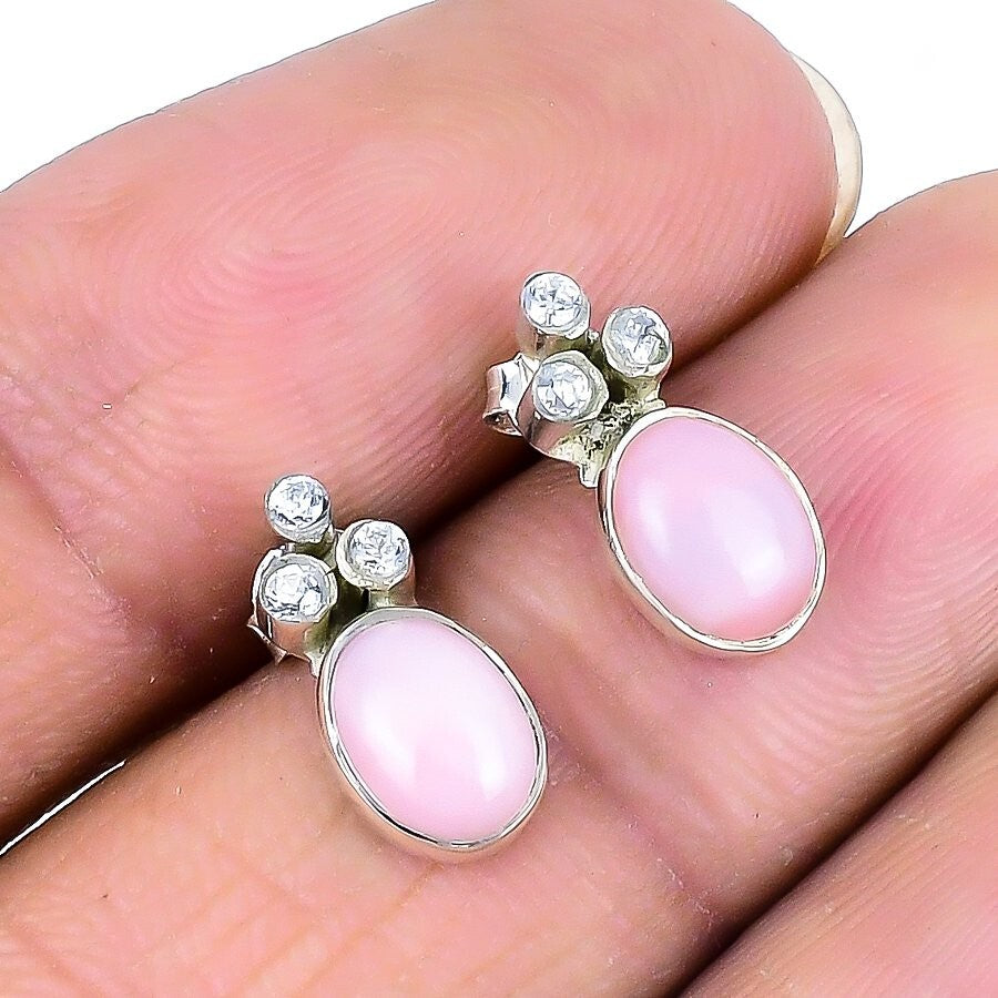 Natural Pink Opal Stud Handmade Handcrafted Mother New Earrings 925 Solid Silver