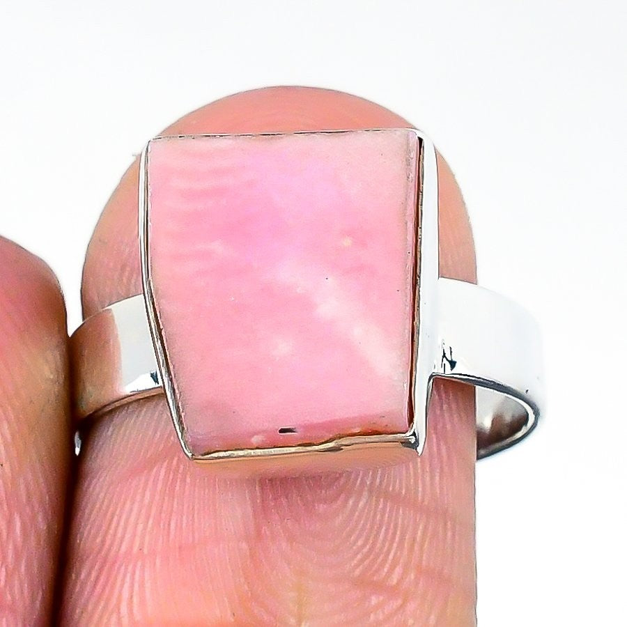 Natural Pink Opal Unique Band Promise Daughter Ring Size 8 Solid Sterling Silver