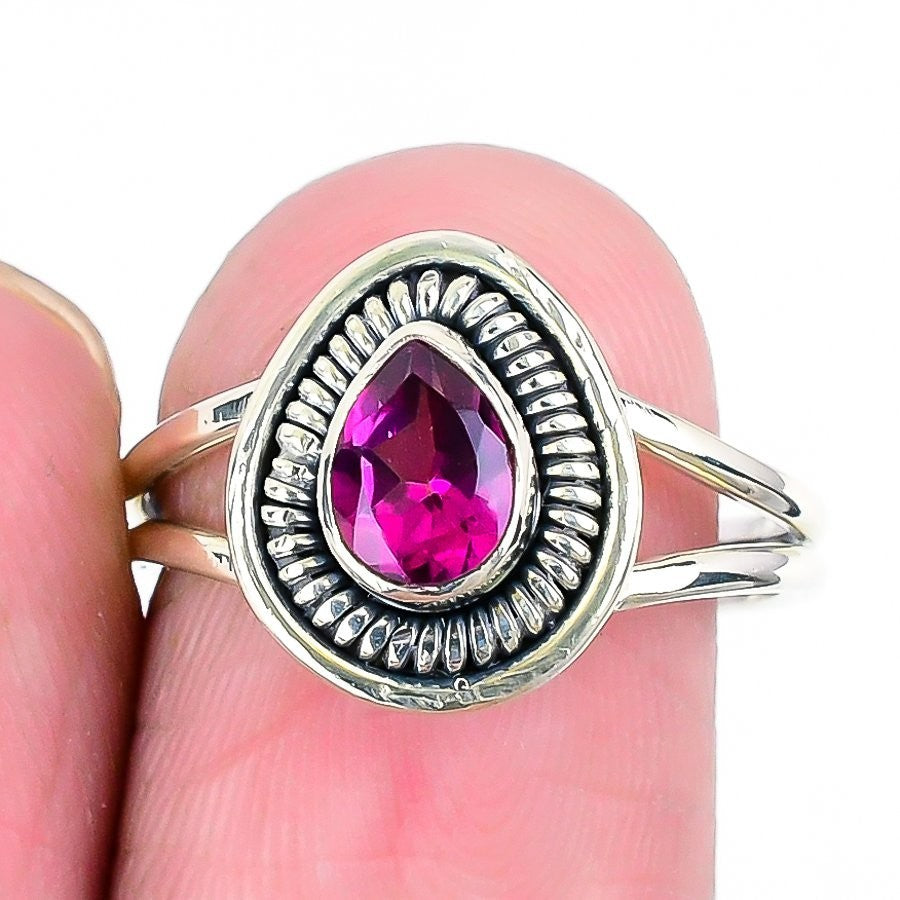 Natural Pink Topaz Cluster Ethnic Elegant Ring Jewelry Size 7.5 925 Solid Silver