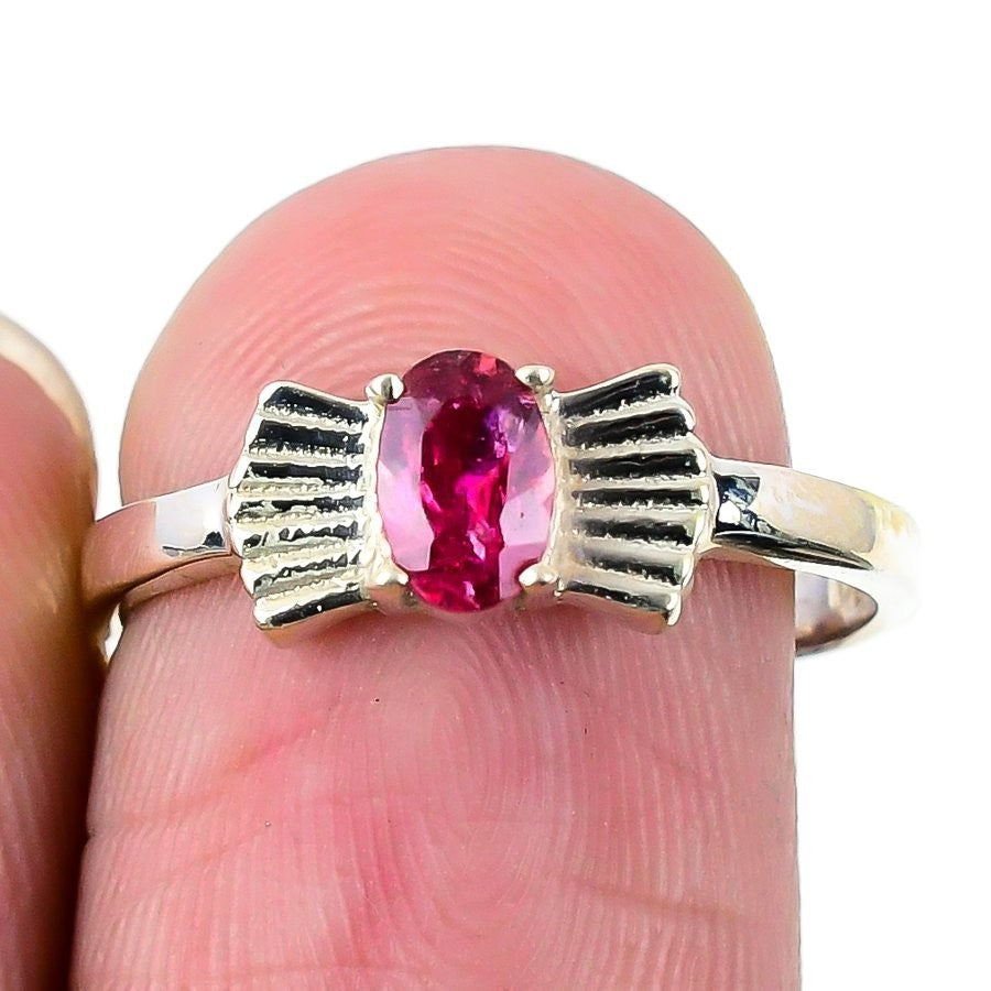 Natural Pink Tourmaline 925 Solid Silver Statement Wedding Ring Jewelry Size 8