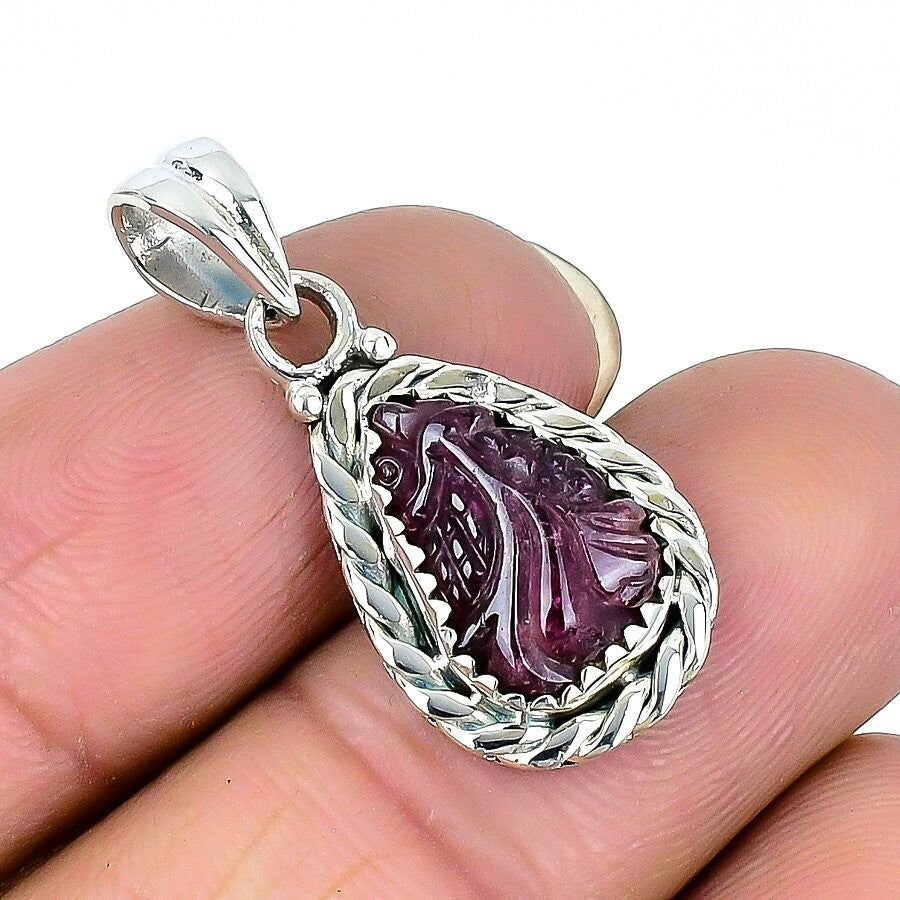 Natural Pink Tourmaline Carving Sterling Silver Heart Chakra New Pendant Jewelry
