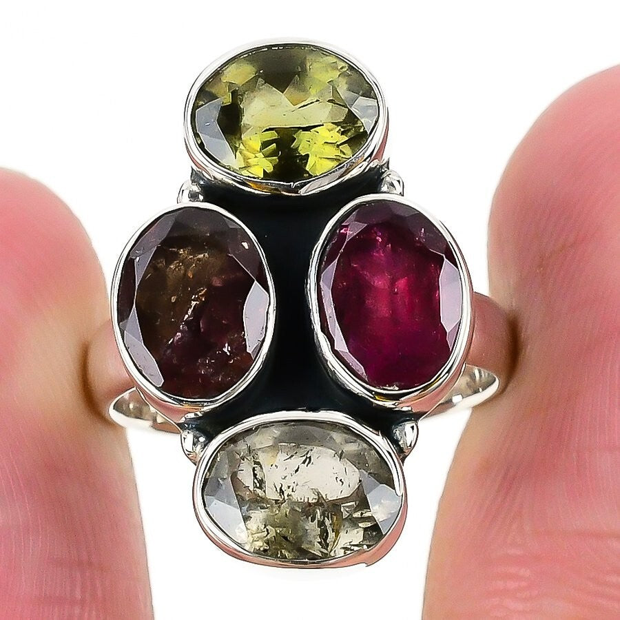 Natural Pink Tourmaline Elegant Statement Wife Ring Jewelry Sterling Silver US 7