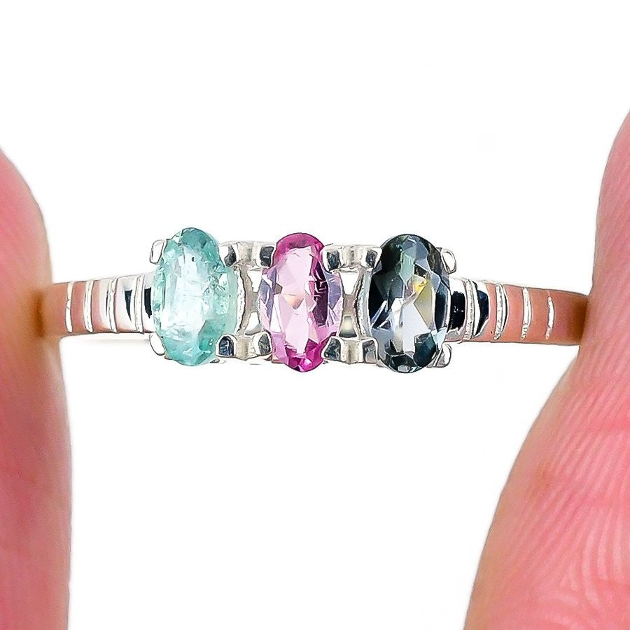 Natural Pink Tourmaline Sister Cluster New Ring Jewelry Size 8 925 Solid Silver