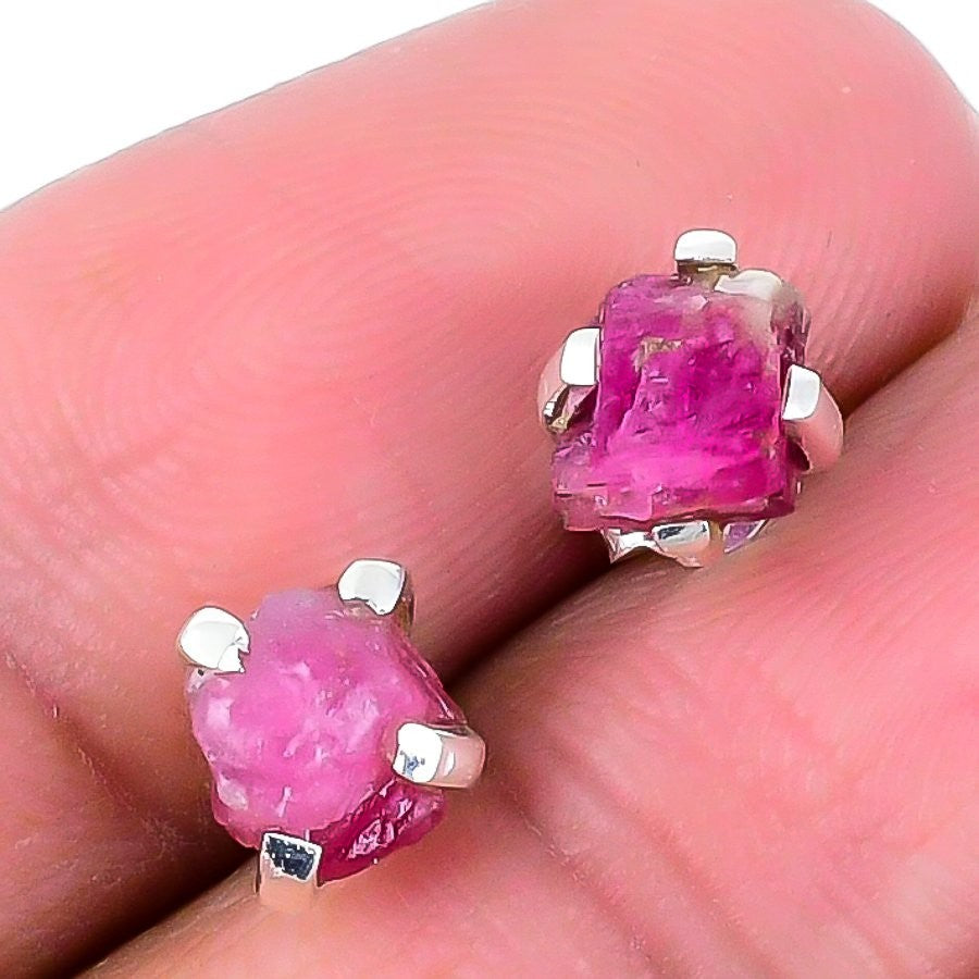 Elegant Natural Pink Tourmaline Sterling Silver New Stud in