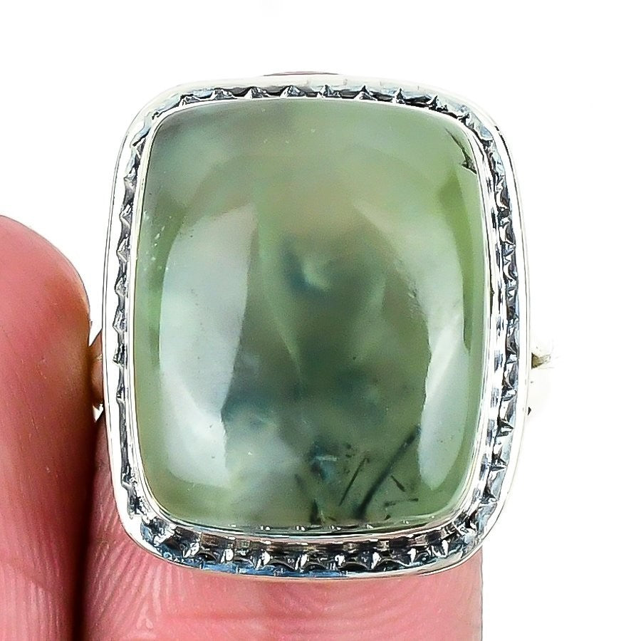 Natural Prehnite Birthday Ethnic Wedding Statement Ring Size 8 925 Solid Silver