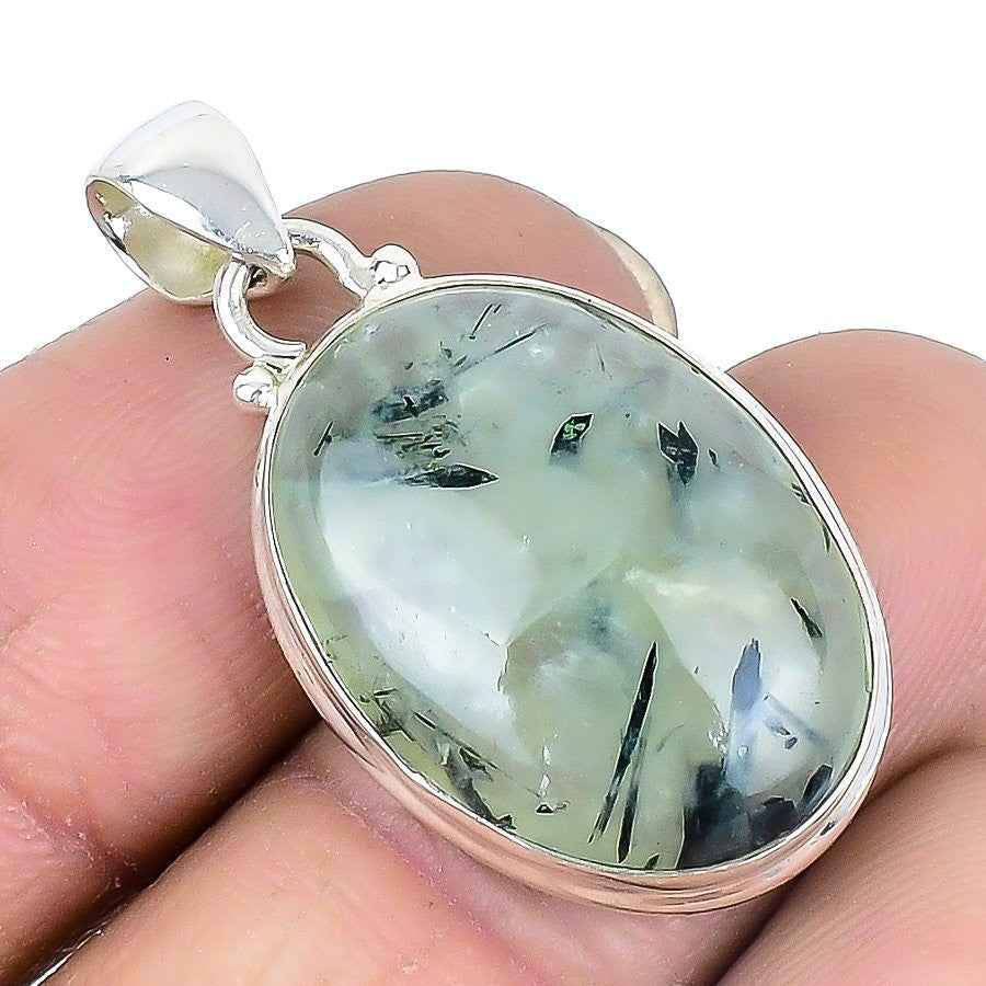 Natural Prehnite Handcrafted Wedding Trendy Sister Handmade Pendant 925 Silver