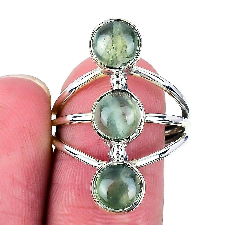 Natural Prehnite Solid Silver Artisan Engagement Channel Set Cluster Sister Ring