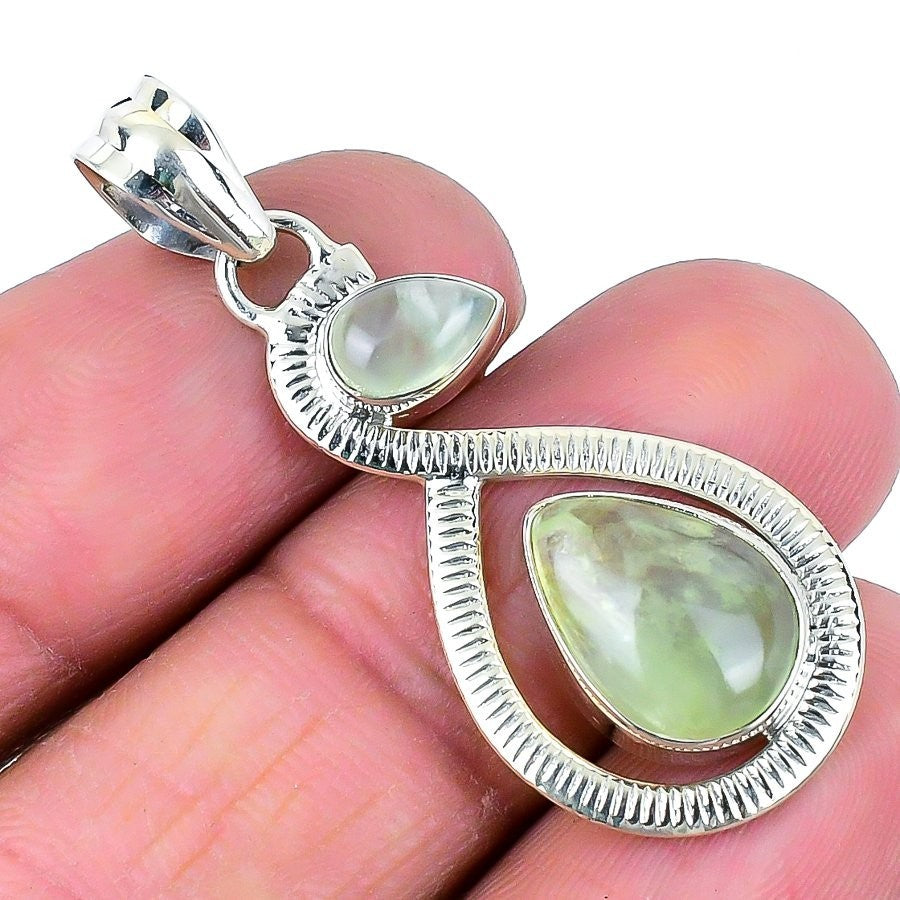 Natural Prehnite Solid Sterling Silver New Anniversary Boho Wife Pendant Jewelry