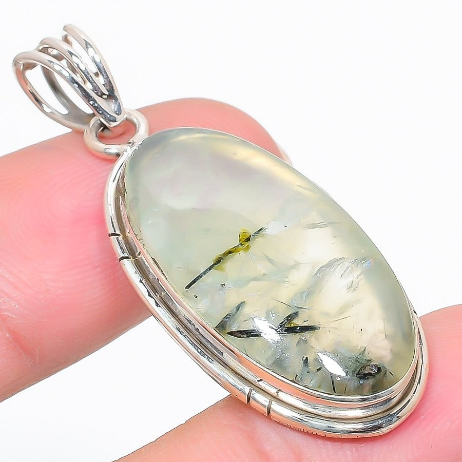 Natural Prehnite Sterling Silver Best Sisters Gift Mother Ethnic Pendant Jewelry