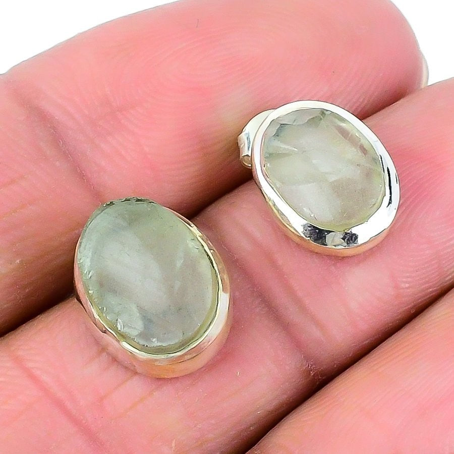 Elegant Natural Prehnite Wife Handmade Screw Back Stud in 92