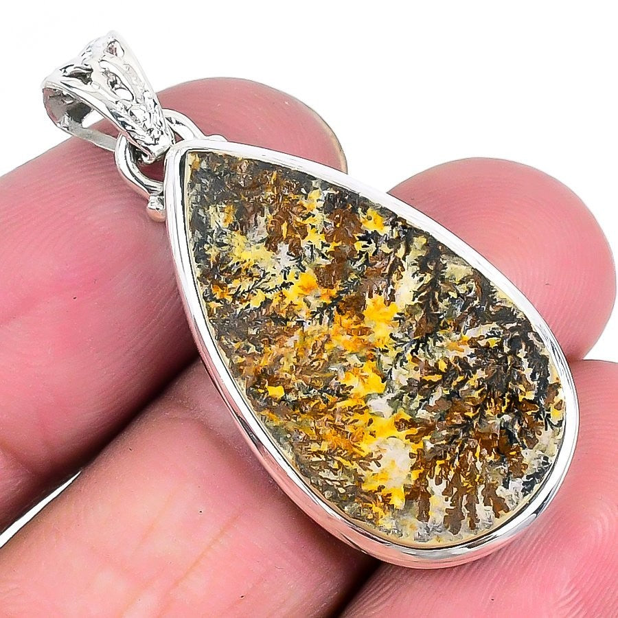 Natural Psilomelaine Dendritic Sterling Silver Channel Set Wedding New Pendant