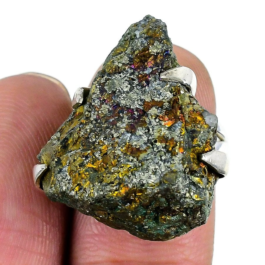Natural Pyrite Druzy 925 Silver Sister Statement Bezel Handcrafted Ring Size 7.5