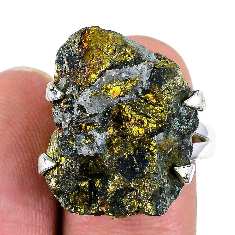 Natural Pyrite Druzy Solid Silver Wife Statement Birthday Anniversary Ring US 8