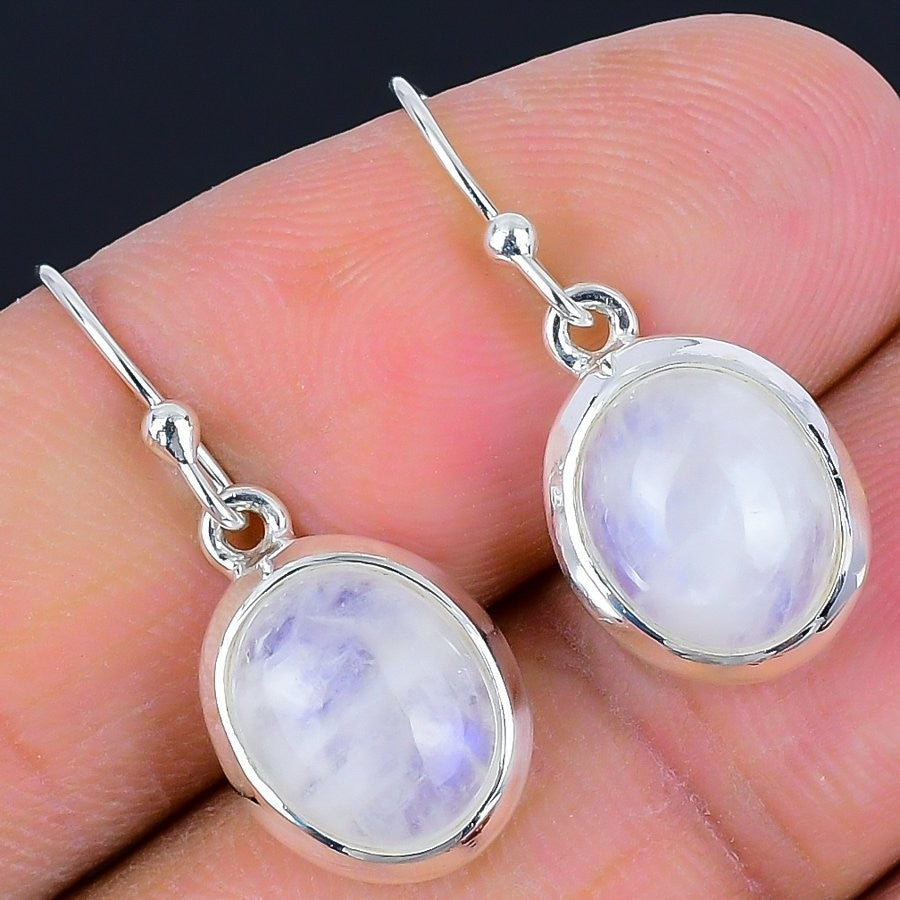 Elegant Natural Rainbow Moonstone 925 Silver Hook Drop in 92
