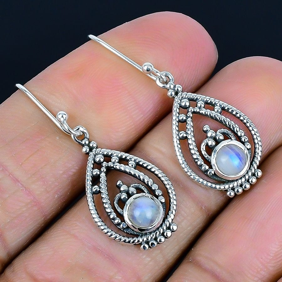 Natural Rainbow Moonstone 925 Silver Sisters Day Dangle Drop Engagement Earrings