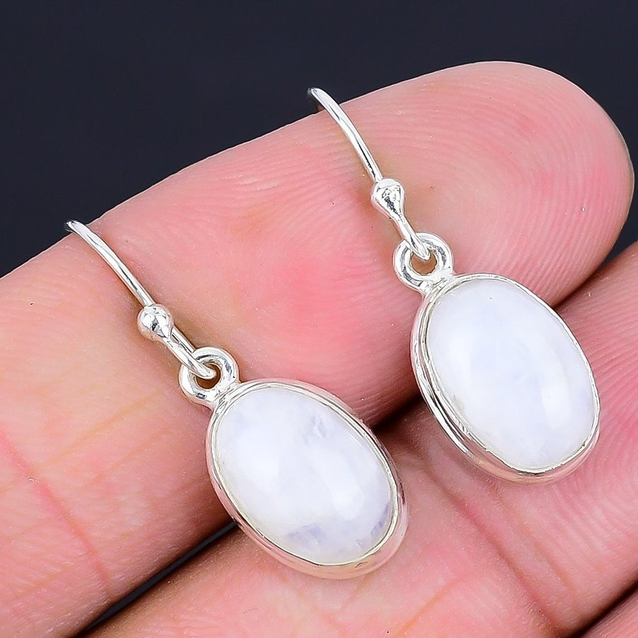 Natural Rainbow Moonstone 925 Solid Silver Dangling Wife Friend Gift Earrings