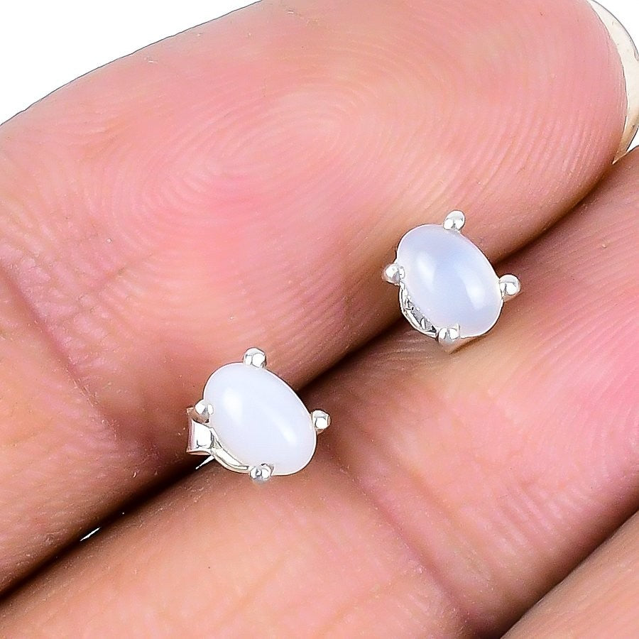 Natural Rainbow Moonstone 925 Solid Silver Sister Boho Stud Handcrafted Earrings