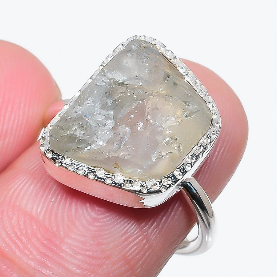 Natural Rainbow Moonstone 925 Solid Silver Statement Daughter Gift Ring US 6.5