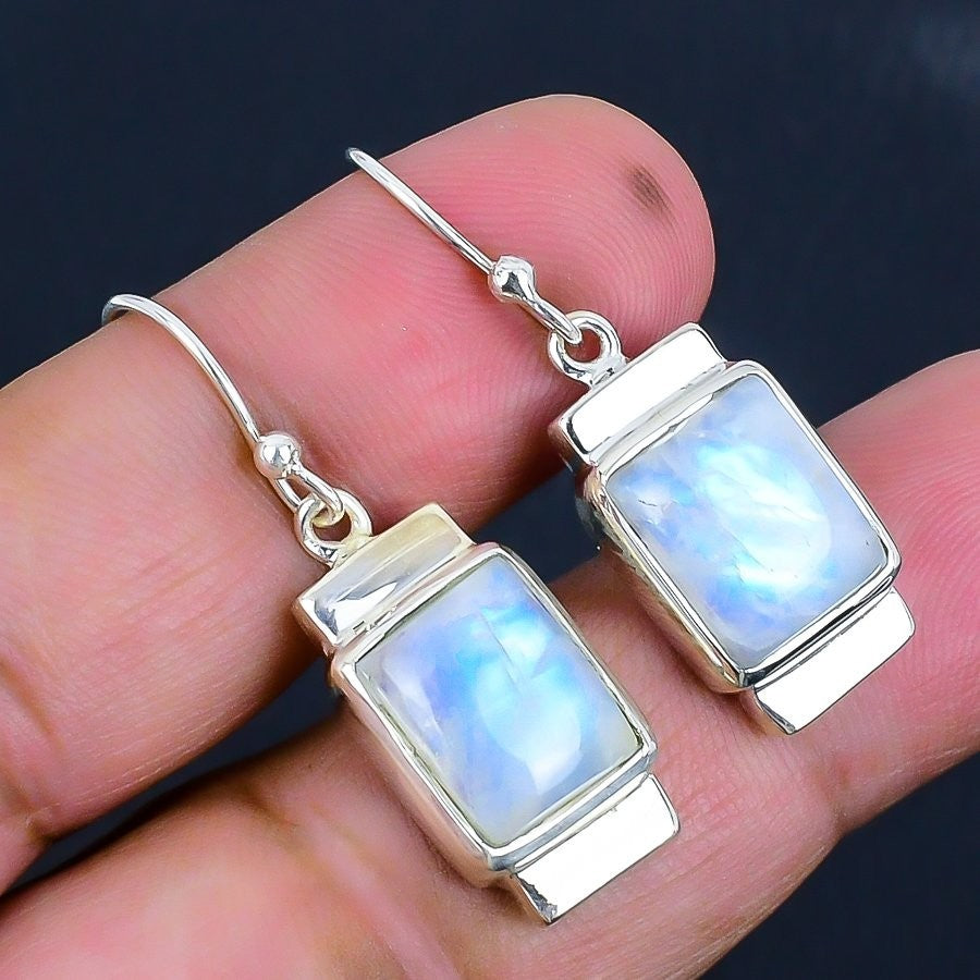 Natural Rainbow Moonstone 925 Solid Silver Wife Elegant Unique Drop New Earrings