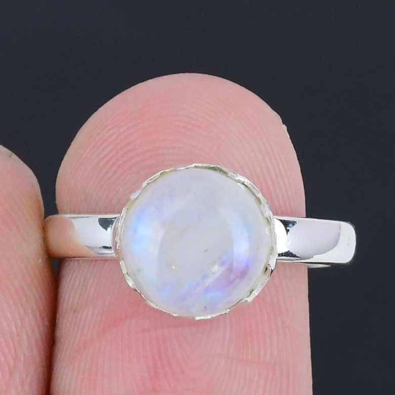 Natural Rainbow Moonstone 925 Sterling Silver Cluster Engagement Ring Size 7.5