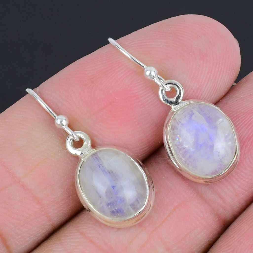 Natural Rainbow Moonstone 925 Sterling Silver Drop Dangle Hook Sister Earrings