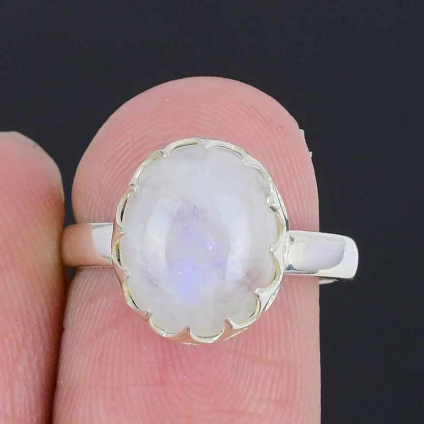 Elegant Natural Rainbow Moonstone 925 Sterling Silver Engage