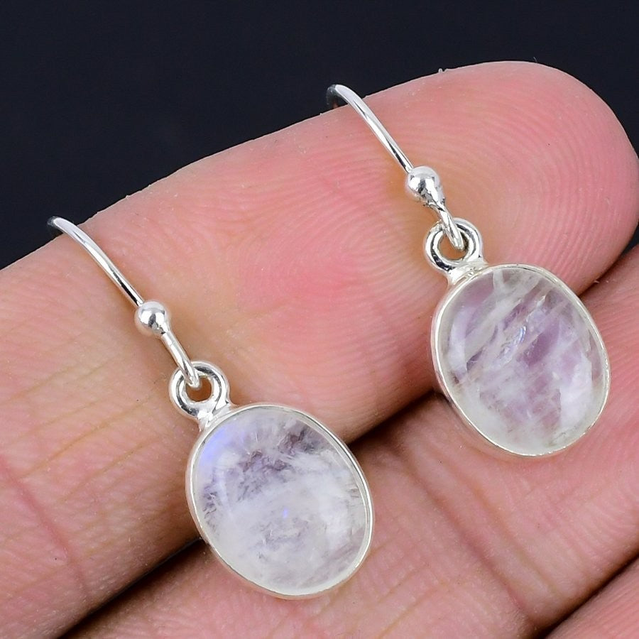 Natural Rainbow Moonstone 925 Sterling Silver Wife Dangle Drop Earrings Jewelry