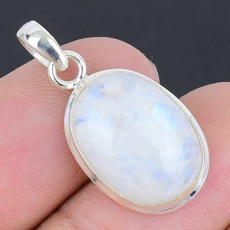 Natural Rainbow Moonstone Artisan Mother Daughter Gift New Pendant 925 Silver