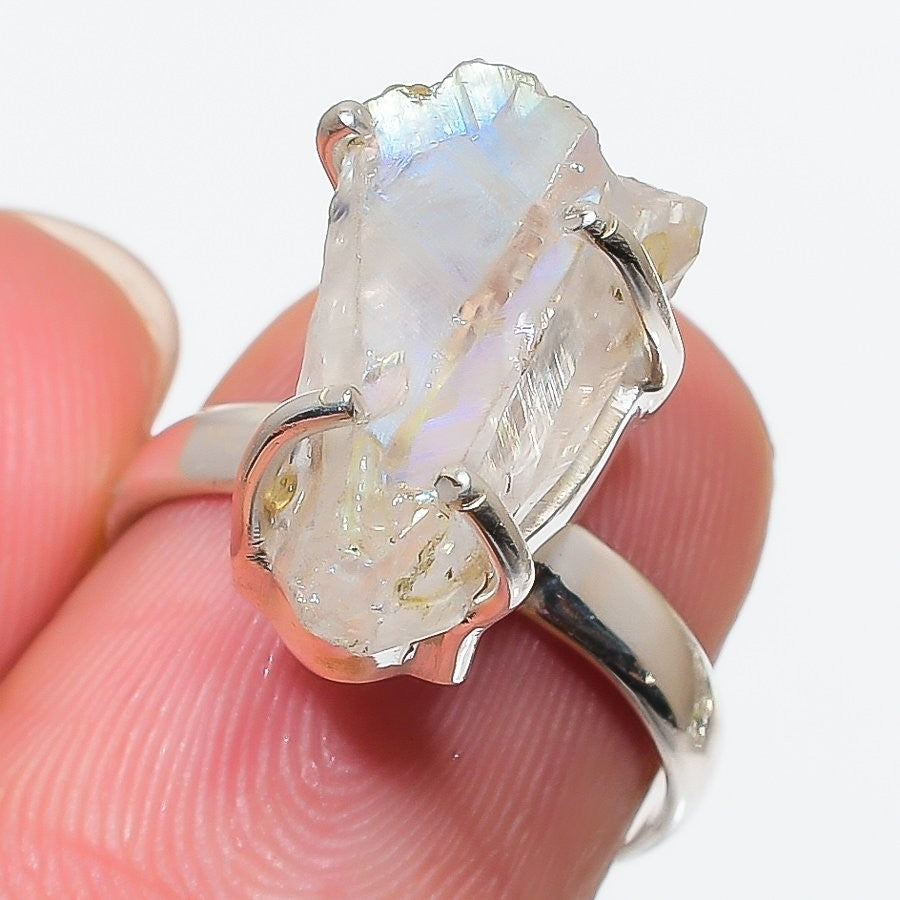 Natural Rainbow Moonstone Birthday New Cluster Sister Ring Size 6.5 Solid Silver