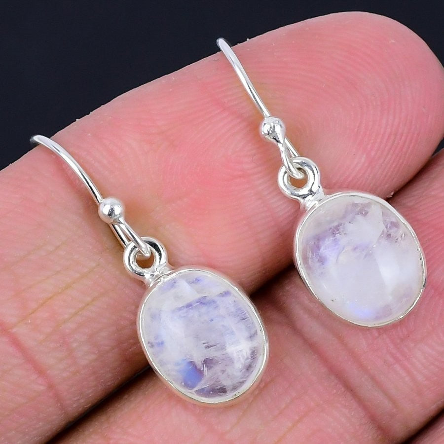 Natural Rainbow Moonstone Dangle Crown Chakra Boho Earrings Jewelry Solid Silver