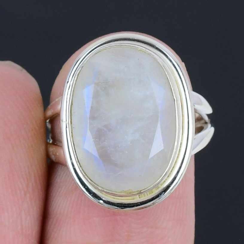 Elegant Natural Rainbow moonstone faceted 925 Solid Silver i