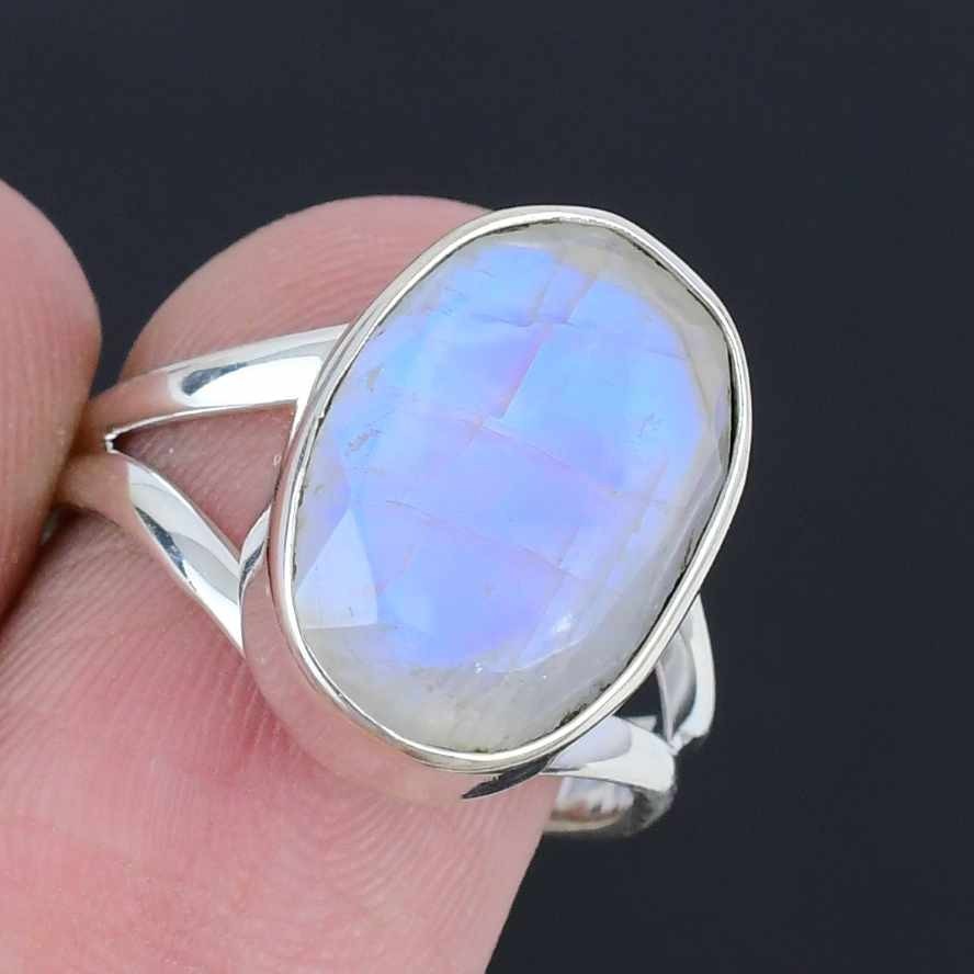 Natural Rainbow Moonstone Faceted New Cluster Ring Jewelry Solid Sterling Silver