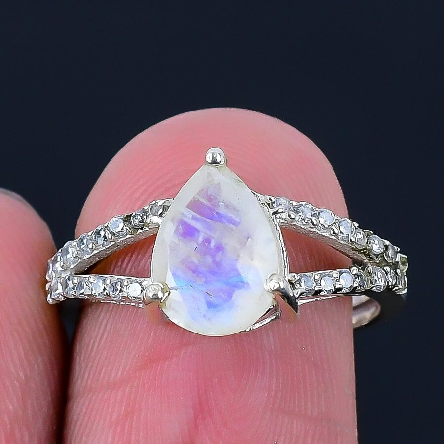 Natural Rainbow Moonstone Mother Statement Ethnic Ring Jewelry 925 Silver US 7