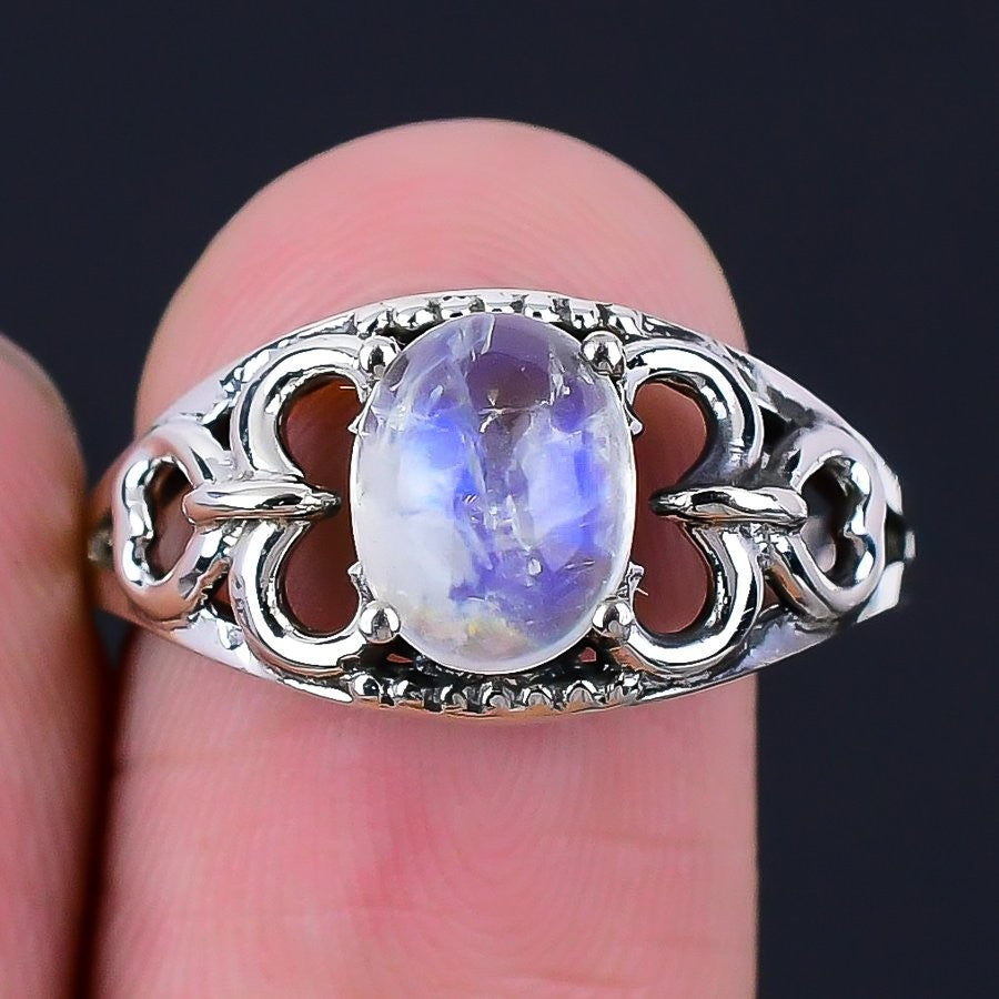 Natural Rainbow Moonstone Sister Statement New Ring Size 9 Solid Sterling Silver