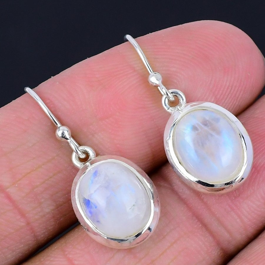 Elegant Natural Rainbow Moonstone Solid Silver Hook New in 9