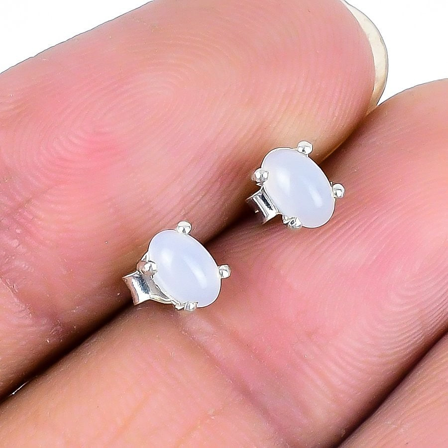 Natural Rainbow Moonstone Solid Silver Unique New Stud Birthday Earrings Jewelry
