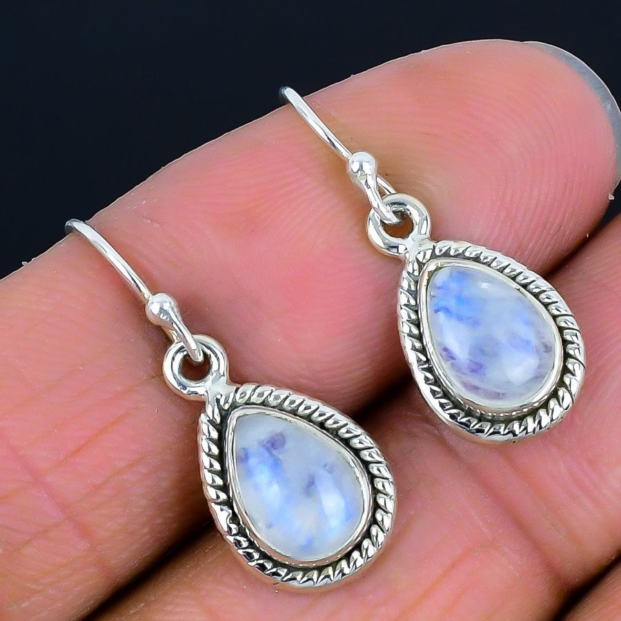 Natural Rainbow Moonstone Solid Sterling Silver Dangling Wife Earrings Jewelry