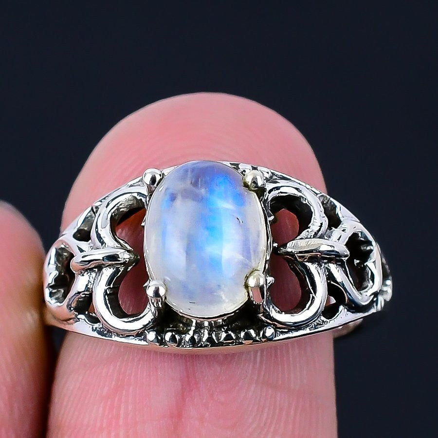 Natural Rainbow Moonstone Solid Sterling Silver Statement Ring Jewelry Size 7