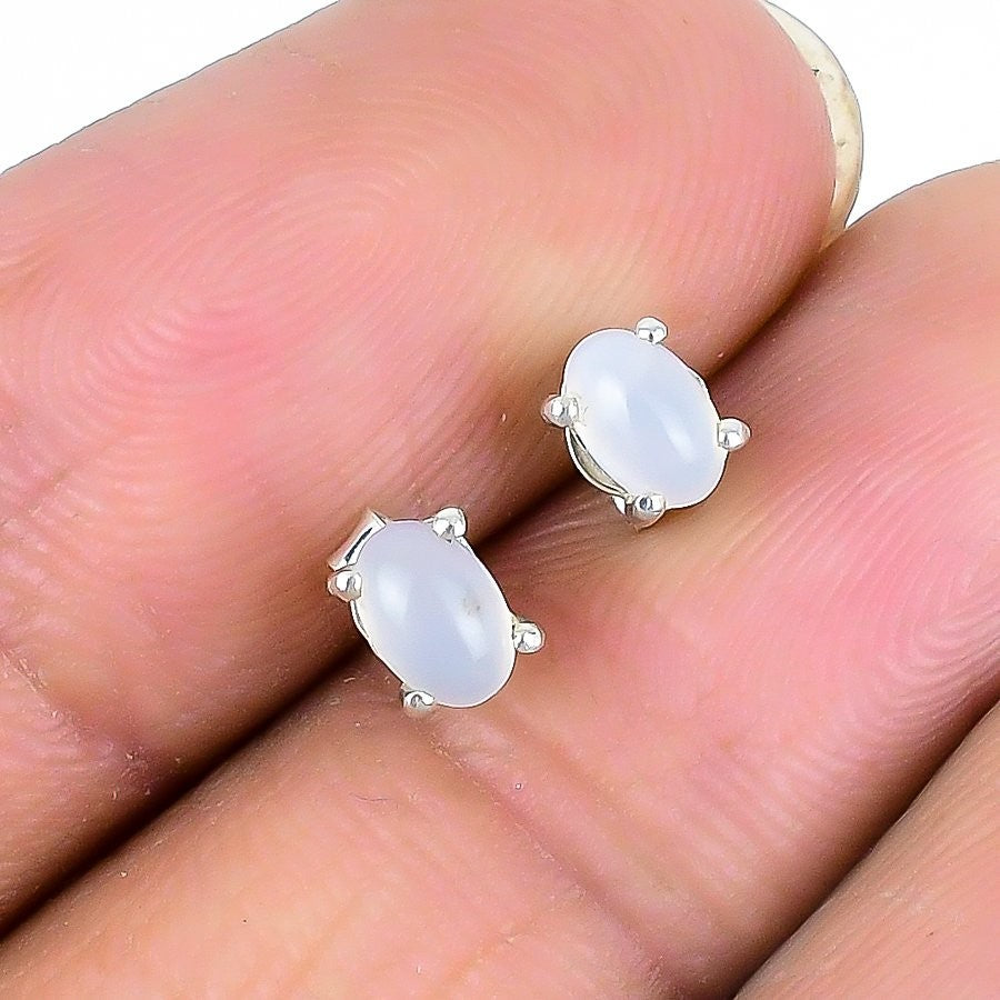 Natural Rainbow Moonstone Solid Sterling Silver Stud Post Anniversary Earrings