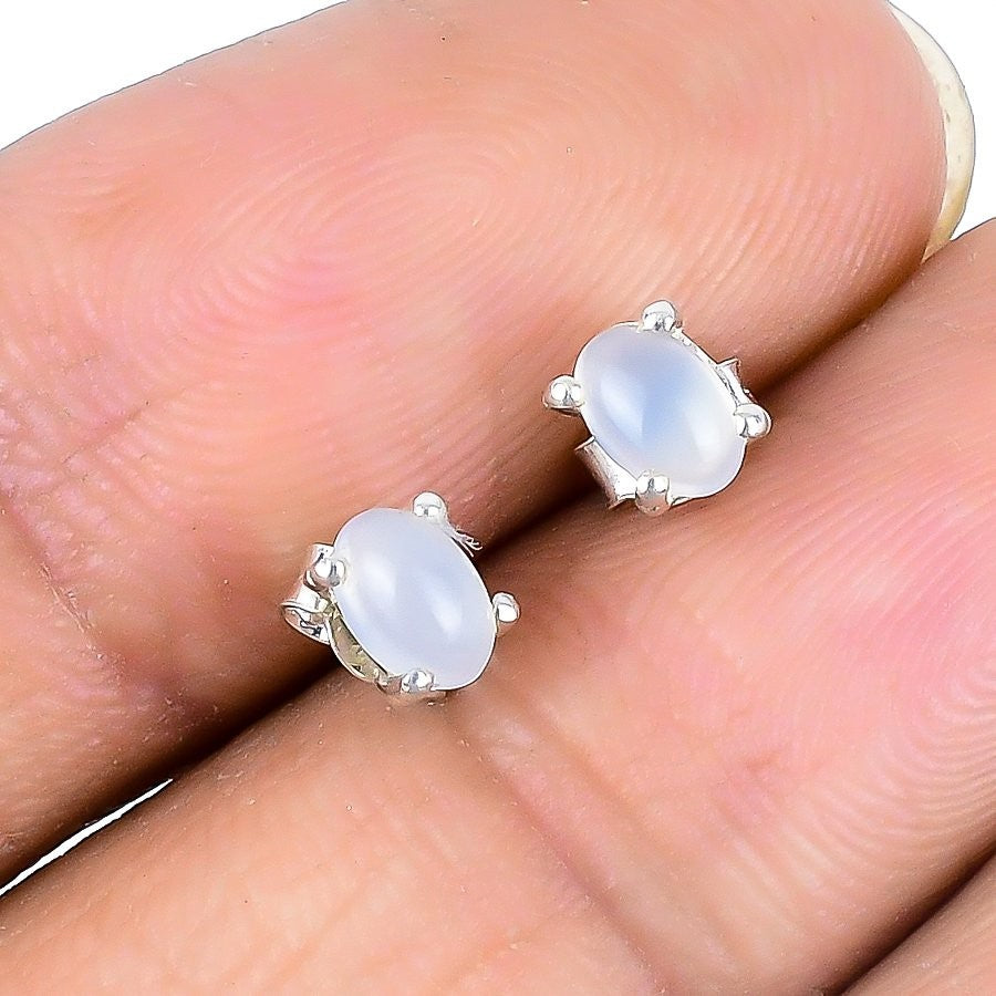 Natural Rainbow Moonstone Solid Sterling Silver Stud Post Boho Earrings Jewelry