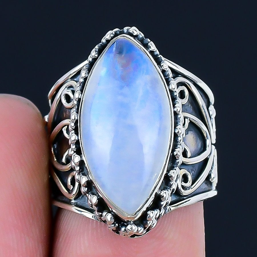 Natural Rainbow Moonstone Sterling Silver Wedding Birthday Statement Ring US 6