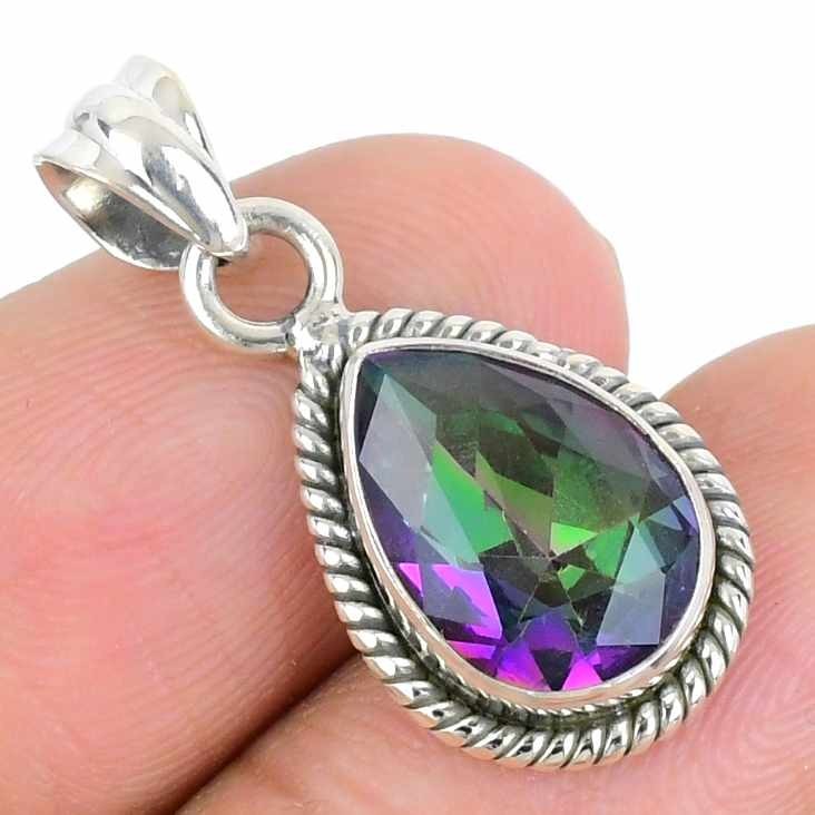 Natural Rainbow Mystic Topaz 925 Silver Boho Sister Engagement Pendant Jewelry