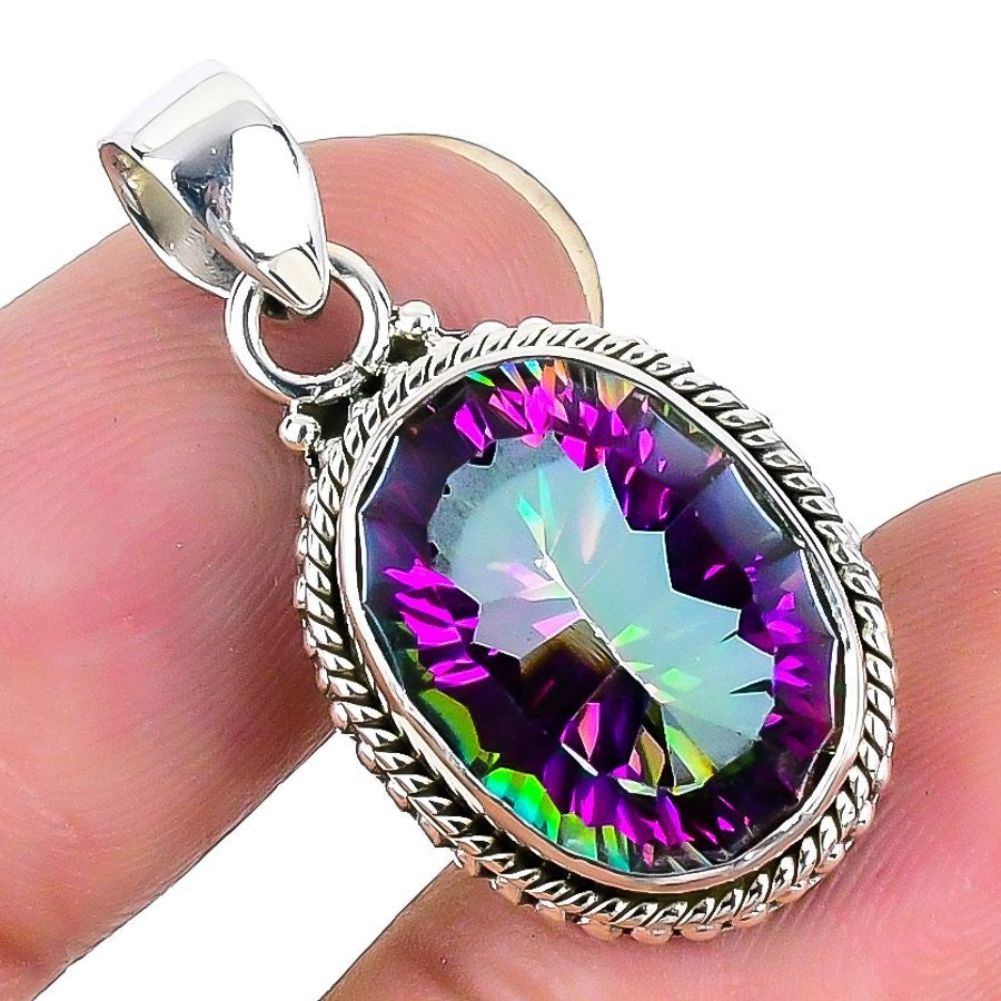 Natural Rainbow Mystic Topaz 925 Silver Daughter Gift Anniversary Wife Pendant